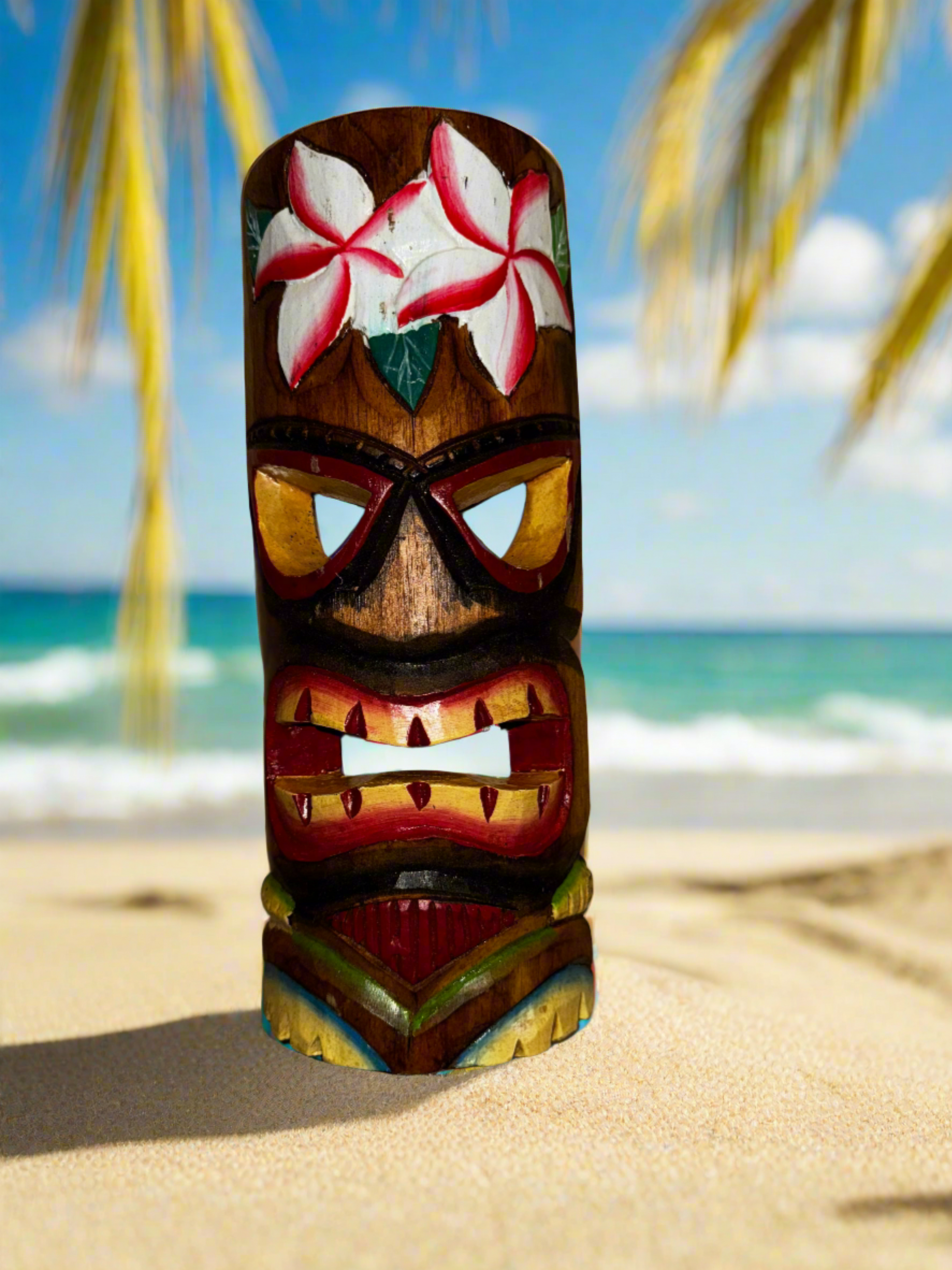 Expertly hand-painted with vibrant colors and intricate details, our 12" Tiki Masks are a stunning addition to any decor. Bring a touch of the tropics to your home or office with this authentic piece. Each mask is uniquely crafted, making it a one-of-a-kind masterpiece.