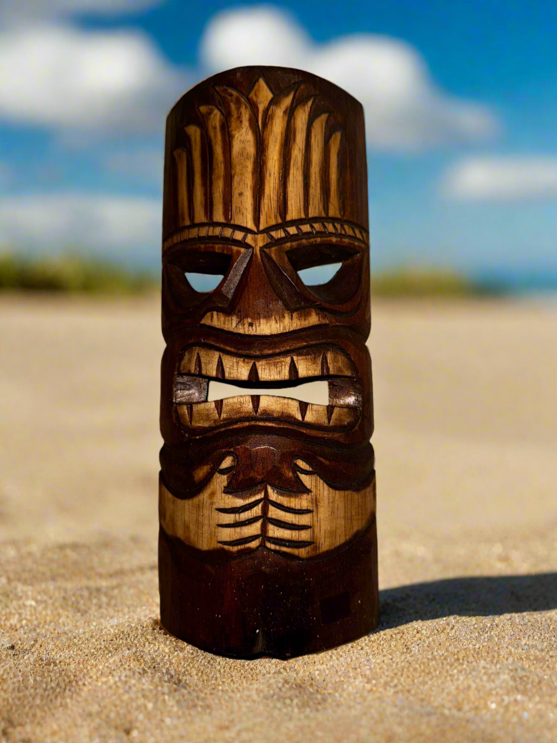 Expertly hand-painted with vibrant colors and intricate details, our 12" Tiki Masks are a stunning addition to any decor. Bring a touch of the tropics to your home or office with this authentic piece. Each mask is uniquely crafted, making it a one-of-a-kind masterpiece.