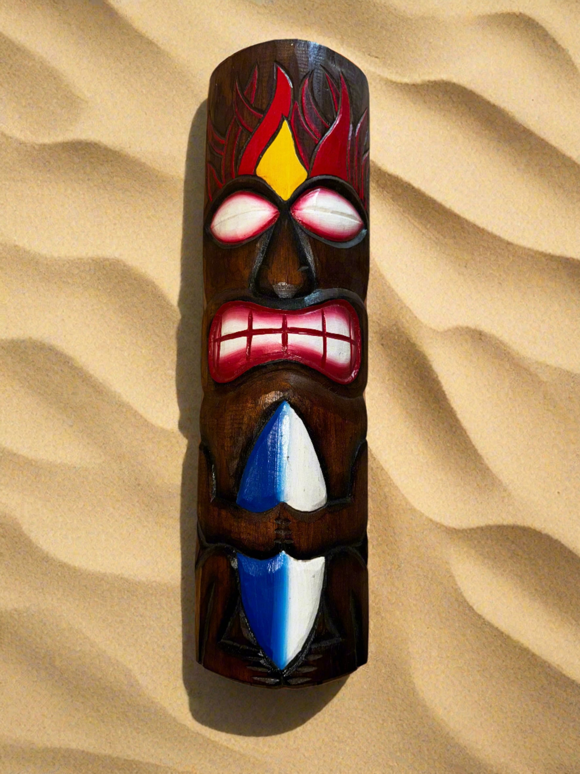Expertly hand-painted with vibrant colors and intricate details, our 20" Tiki Masks are a stunning addition to any decor. Bring a touch of the tropics to your home or office with this authentic piece. Each mask is uniquely crafted, making it a one-of-a-kind masterpiece.