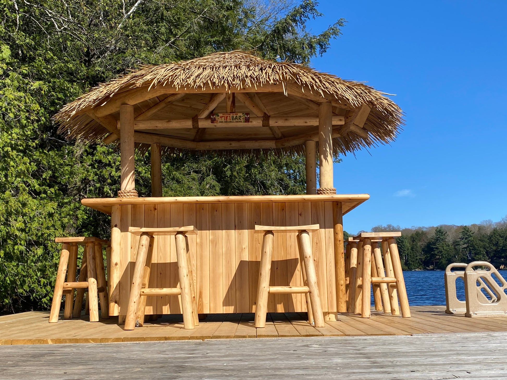 Command attention and create the ultimate backyard destination with The Big Kahuna Tiki Bar. Designed for those who take their leisure seriously, this bold 90" x 90" centerpiece is meticulously handcrafted from Ontario White Cedar, from the bar base and cabinetry to the robust, log-framed roof.