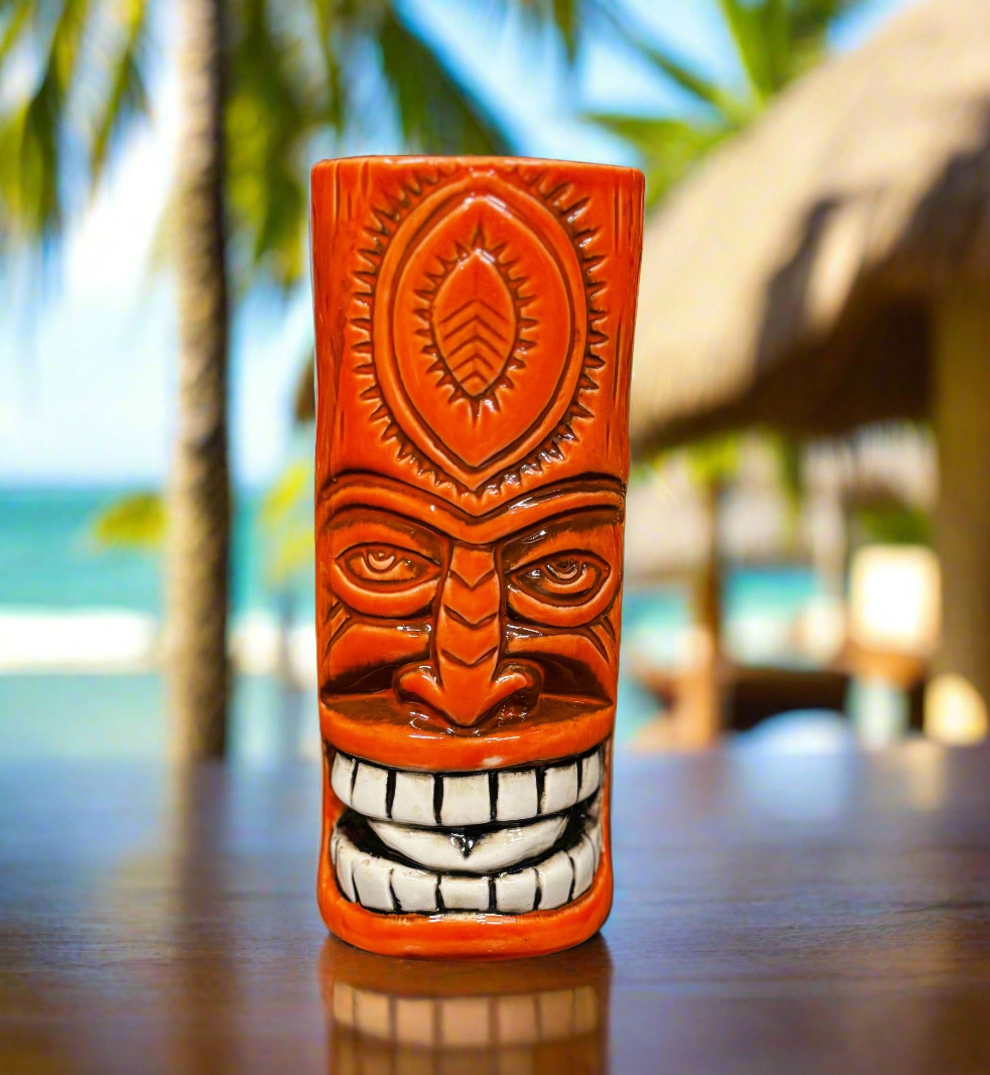 Expertly crafted, this ceramic tiki mug brings a touch of island charm to any drink. With a orange glaze and intricate details, it is both functional and decorative. Elevate your next cocktail party or add a unique piece to your collection.